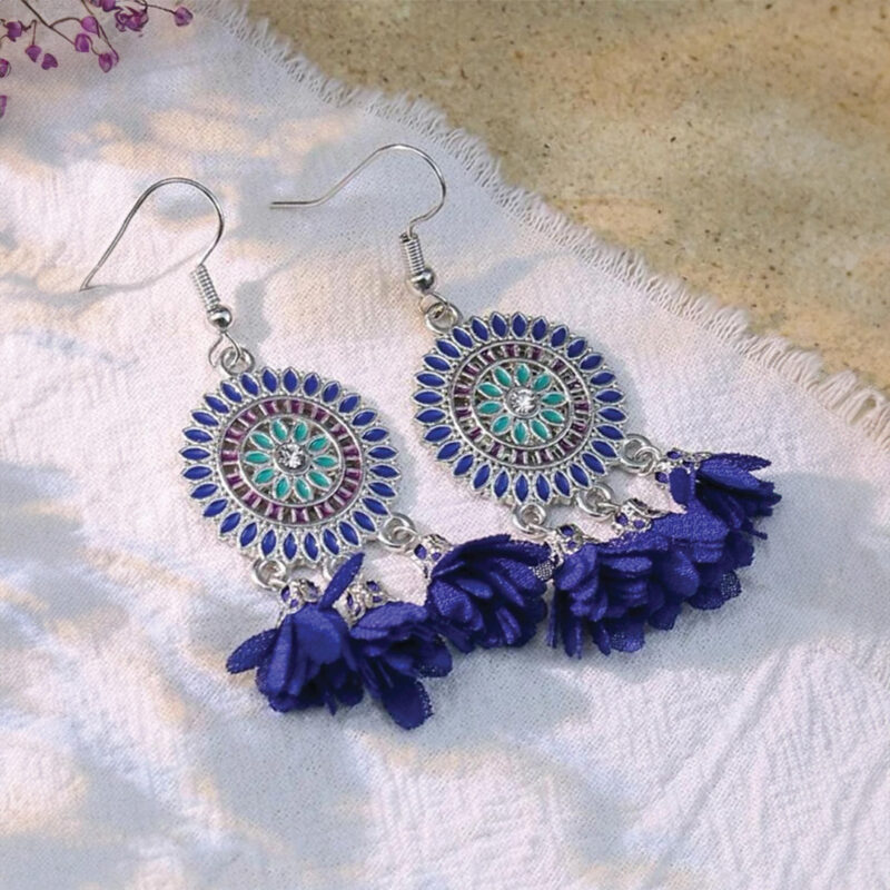 10-Pair Fabric Flower Earring Set: Assorted colorful fabric flower designs, perfect for mixing and matching with any outfit.