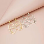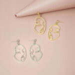 A Face Figure Drop Earring features a dangling element designed to resemble a face.