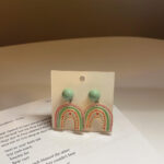 Embrace a touch of whimsy with these charming arch-shaped earrings, featuring a pastel rainbow palette with playful dot embellishments.
